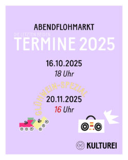 Wir starten am 1. Mai bereits mittags Queer & Quirlig in den Feiertag, sommerlich in den Abend-Flohmarkt, zeigen eine interessante Ausstellung rund um das Projekt Trotz alledem!, werden musikalisch mit Liedern aus dem Widerstand antifaschistischer Bewegungen, begrüßen den Retrogott zum ersten Mal in der Kulturei und freuen uns so sehr auf die 2. Möglichkeitsräume.